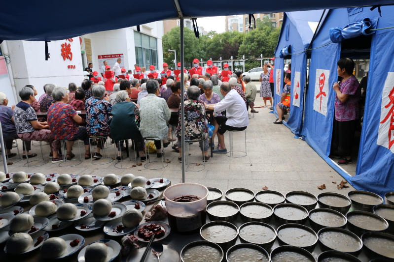 7月22日,早上5點(diǎn)多,第一天參加活動(dòng)的支部黨員已早早來到通盛社區(qū)莫文隋愛心粥服務(wù)點(diǎn),開始了一個(gè)忙碌而有意義的早晨。黨員志愿者們身著紅色馬甲,與其他志愿者一起為當(dāng)天前來就餐的85位孤寡老人、殘疾人、環(huán)衛(wèi)工端飯送菜,忙碌不停,用最直接、最貼心的語言、行動(dòng),送上溫暖和關(guān)愛。就餐者一句簡單的謝謝,讓黨員志愿者心中都涌動(dòng)著難以言盡的感動(dòng)。