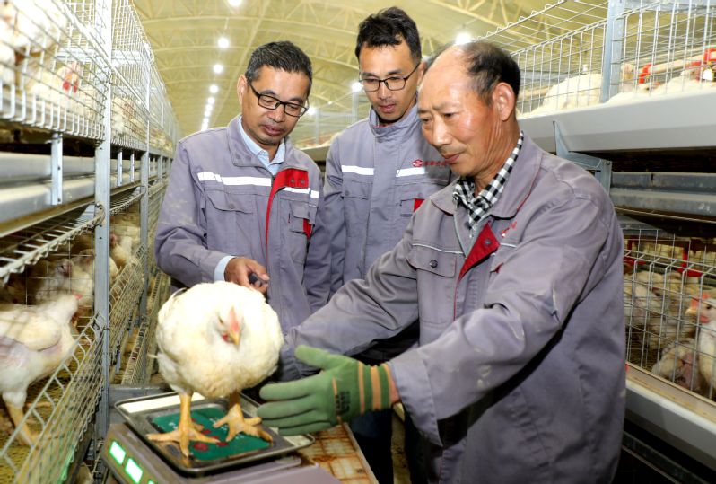 強化責任擔當,堅持真抓實干。公司領(lǐng)導每日深入各雞場進行巡視檢查,及時發(fā)現(xiàn)解決生產(chǎn)過程中遇到的問題、難點,為養(yǎng)殖場正常運轉(zhuǎn)保駕護航。全體干群立足本職,真抓實干,對照肉雞養(yǎng)殖管理規(guī)范化要求,加強巡舍檢查,嚴控投料飲水、溫控通風,通過“嗅、聽、看、問、感”推進精細化養(yǎng)殖,同時對標一流養(yǎng)殖企業(yè),建立健全各雞場年度養(yǎng)殖考核責任制,充分調(diào)動干部職工生產(chǎn)積極性。“東升雞場今天開始將陸續(xù)出欄90萬只肉雞,這是公司今年出欄的第三批肉雞,前期東方雞場已銷售68萬只,料肉比達到1.45,處于行業(yè)較高水平。”公司養(yǎng)殖服務部主任華蕾說。