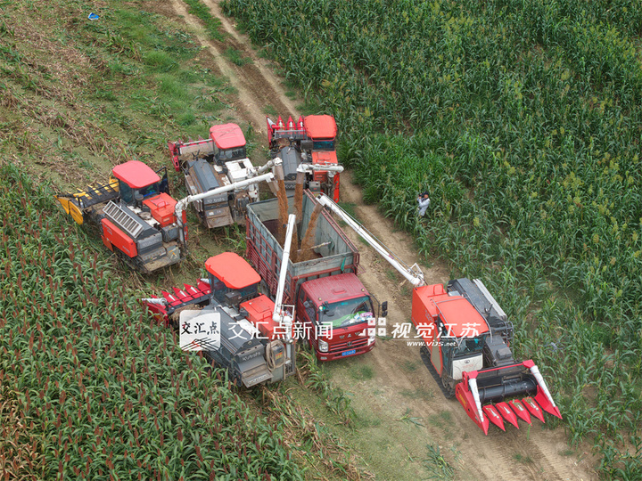 9月21日,江蘇農(nóng)墾江心沙農(nóng)場(chǎng)位于金壇長(zhǎng)蕩湖和錢資湖畔外拓基地的8000余畝紅高粱全面開鐮收割。許叢軍 袁偉 攝 視覺江蘇網(wǎng)供圖